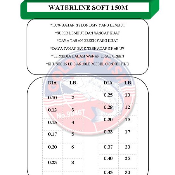 Senar Goldenfish Waterline Soft Nilon Lembut 150M