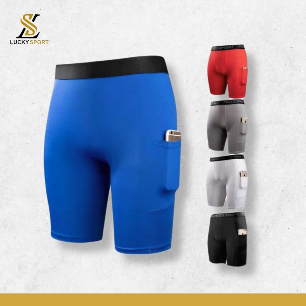 CELANA PENDEK COMPRESSION FITNES GYM RUNNING LEGGING SHORT POCKET SAKU SEPEDAH LARI BAWAHAN OLAHARAGA
