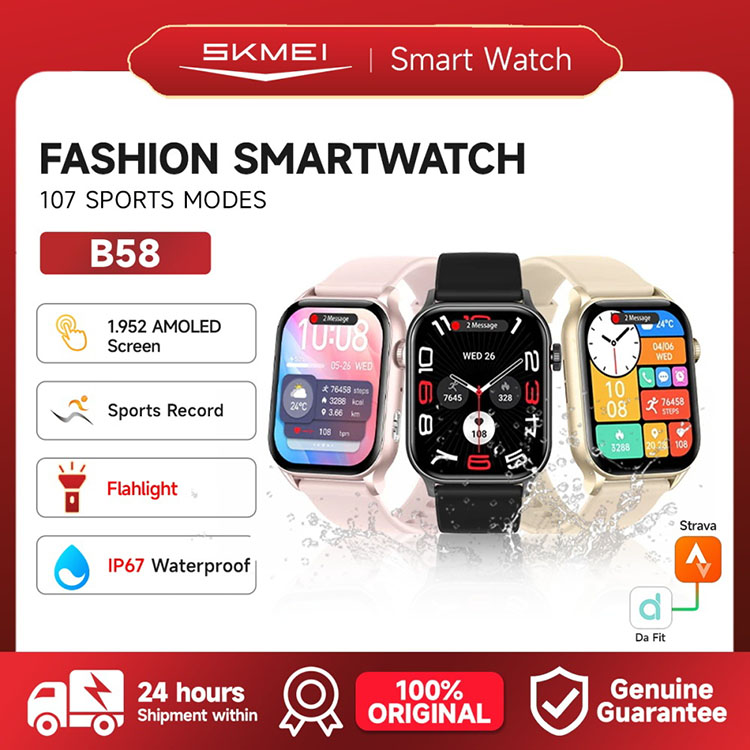 SKMEI B58 Smartwatch Support Strava 1.95INCI Amoled Touch Screen IP67 Waterproof Jam Tangan Pria Bluetooth Call