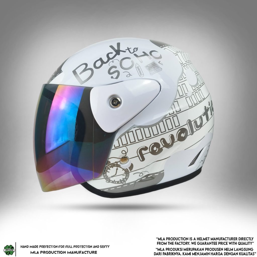 HELM HALF FACE DEWASA EVO MOTIF NOTE REVOLUTION MIRIP SEPERTI HELM GM ORIGINAL MOTIF NOTE BECK TO SCHOOL - SNI