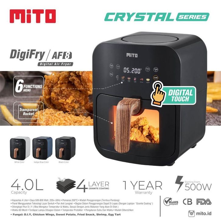 MITO Digital Air Fryer DIGIFRY AF8 Crystal Series 4 Liter Wadah Transparan