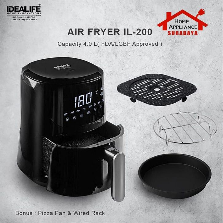 IDEALIFE Air Fryer 4 Liter Low Watt IL-200 / IL200 - Penggoreng Tanpa Minyak