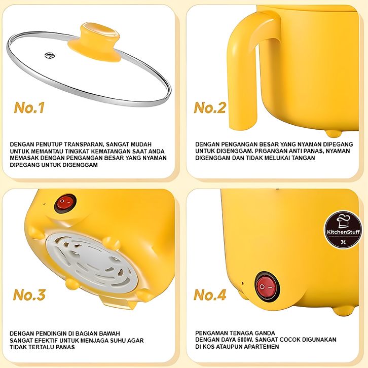 Panci Listrik 450W dengan Pengukus - Diameter 18cm - Teflon Anti Lengket | KITCHEN STUFF