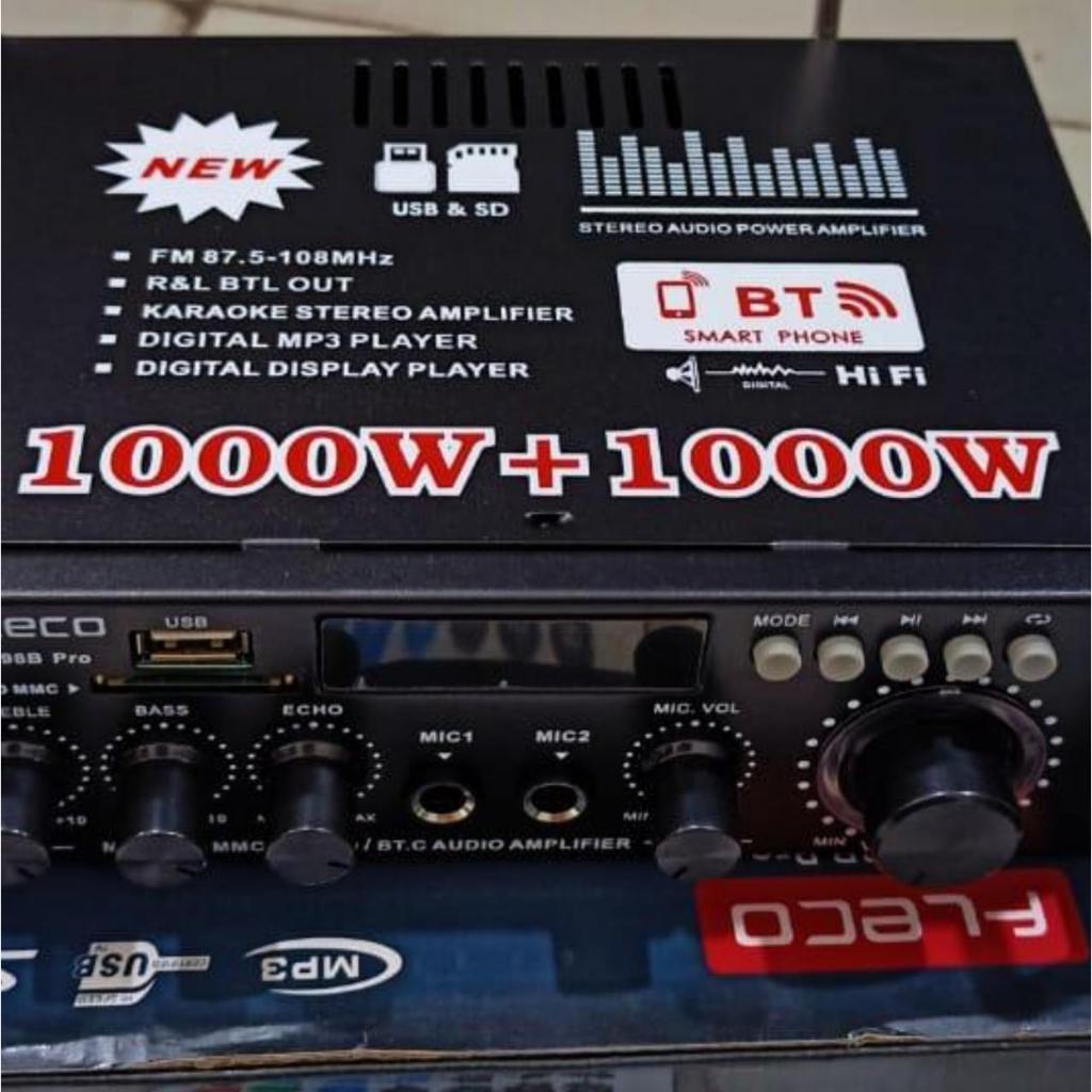 Power Amplifier Daya 1000w+1000w Original Fleco BT-198B Pro Bluetooth Penguat Suara Full Bass Big Sound