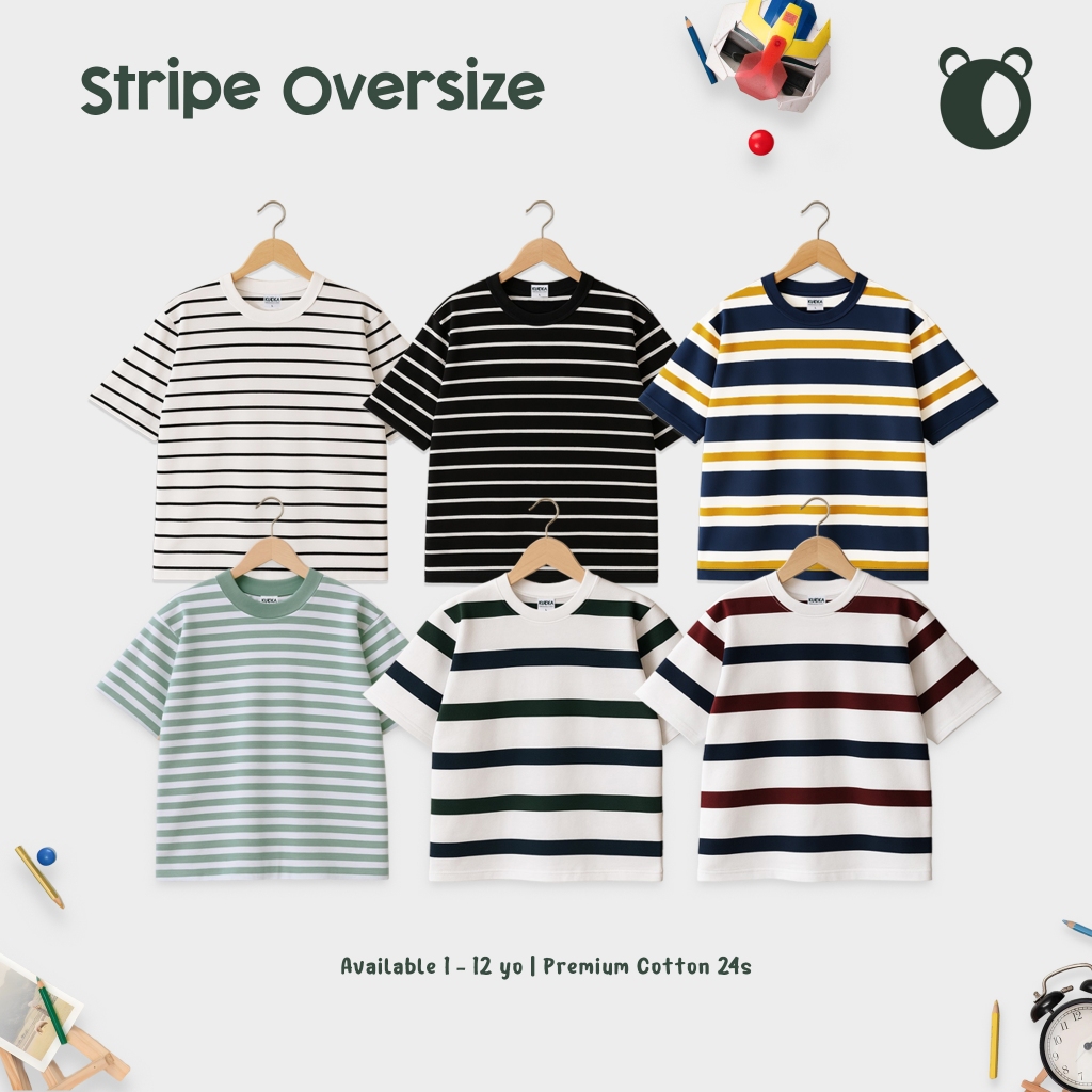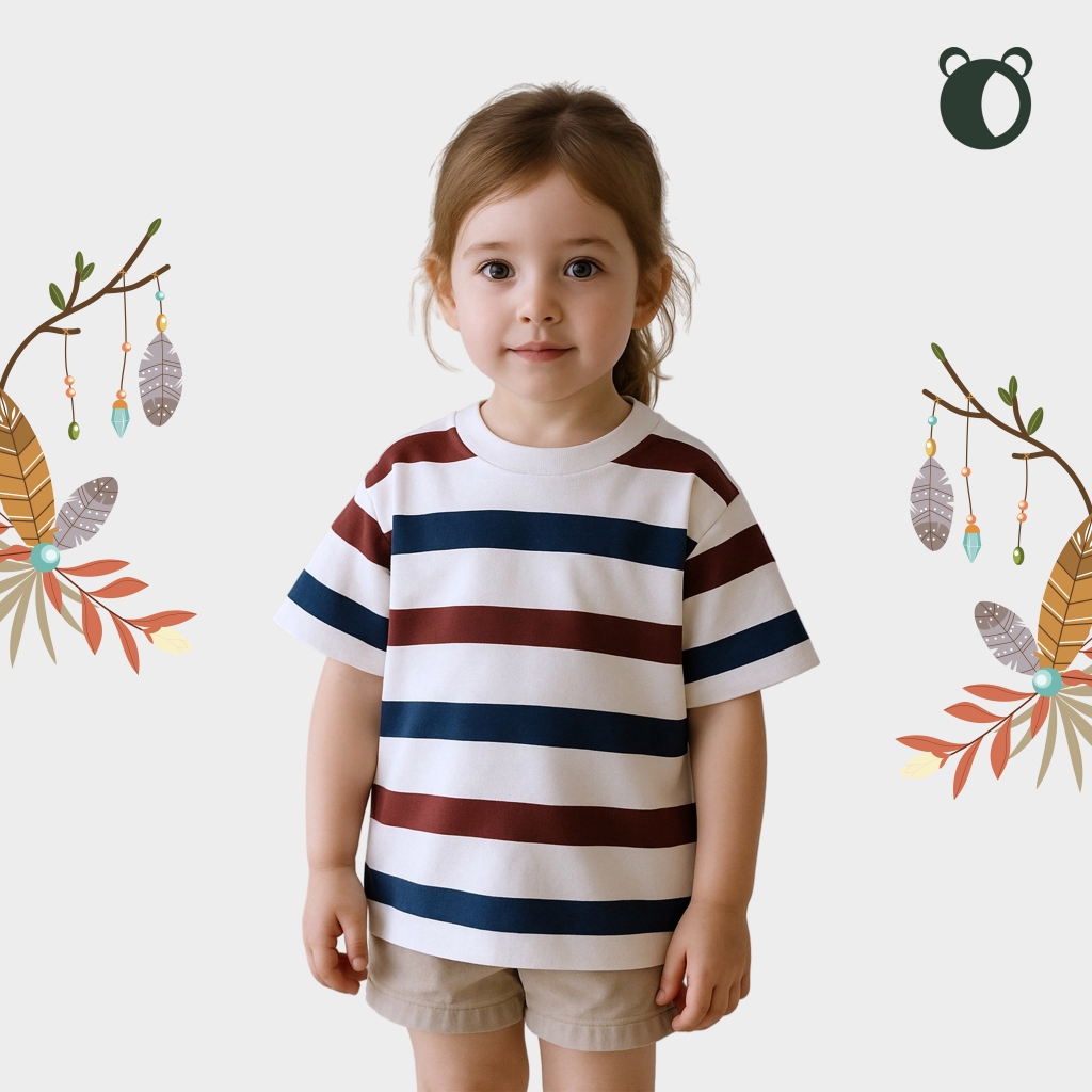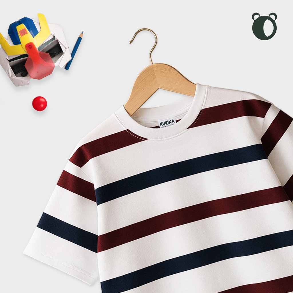 KUOKABASIC KAOS SALUR ANAK - W. RED NAVY | KAOS GARIS ANAK | BAJU STRIPE ANAK KAOS OVERSIZE ANAK 24S