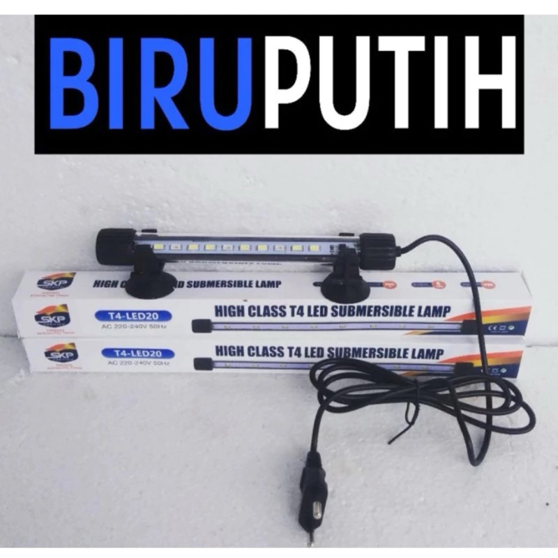 Lampu celup led aquarium dan aquascape SKP PREMIUM T4 LED 20 untuk tank ukuran 20cm cm akuarium warna biru putih pelangi