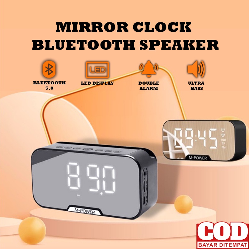 Speaker Jam Bluetooth Stereo Led Mirror Display / Digital Clock Alarm Bluetooth with Bass Speaker / Jam Alarm Bluetooth