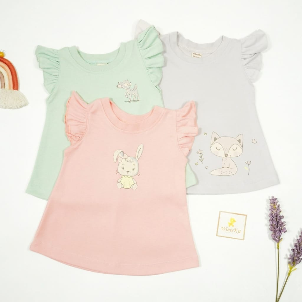 3 PCS DRESS BAYI WINTEKU BABY GIRL S M L (6 BULAN - 4 TAHUN) WINTEKU SIMPLE CASUAL RUFFLE DRESS ANAK