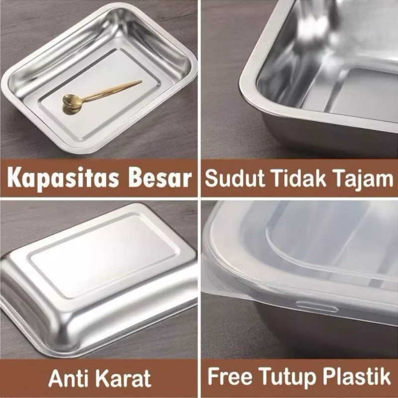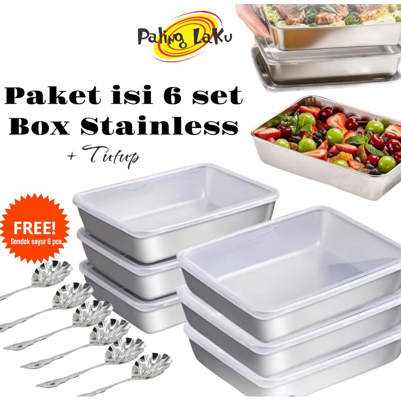 Paket Combo 6 pcs Box Stainless 20 cm x 25 cm Nampan Fresh Box + Sendok Sayur 6 pcs