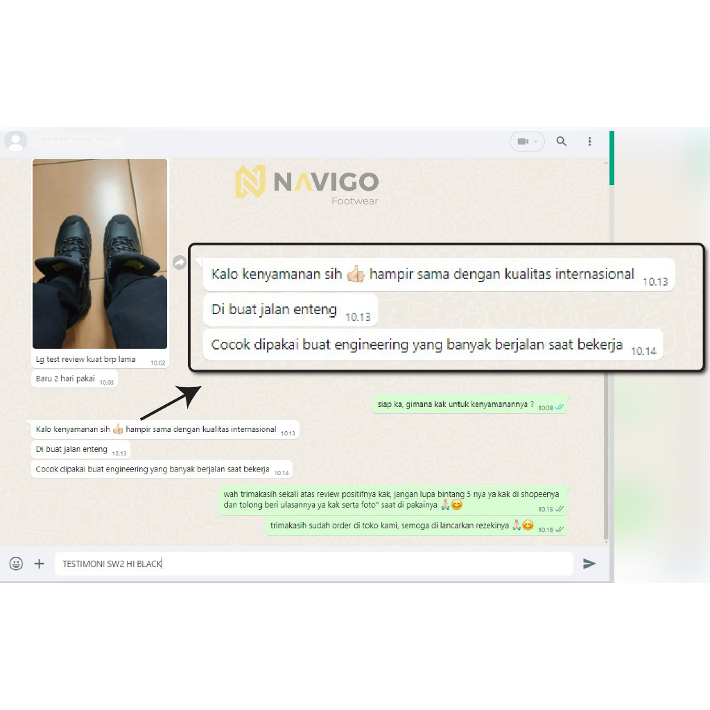 Navigo Sepatu Safety Pria Wanita SW2 Hi Black - Safety Shoes Anti Slip Outdoor Touring Hiking