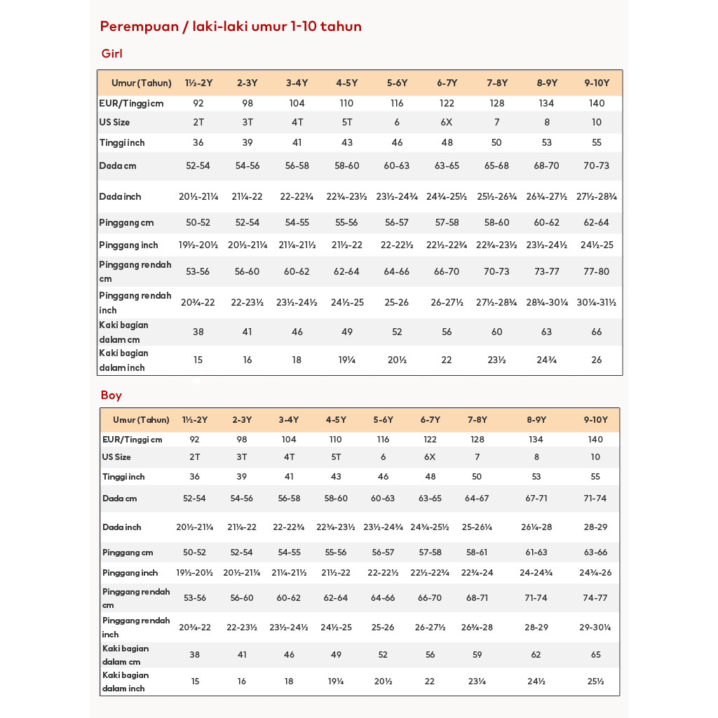 1½-2Y, 2-4Y, 4-6Y, 6-8Y, 8-10Y