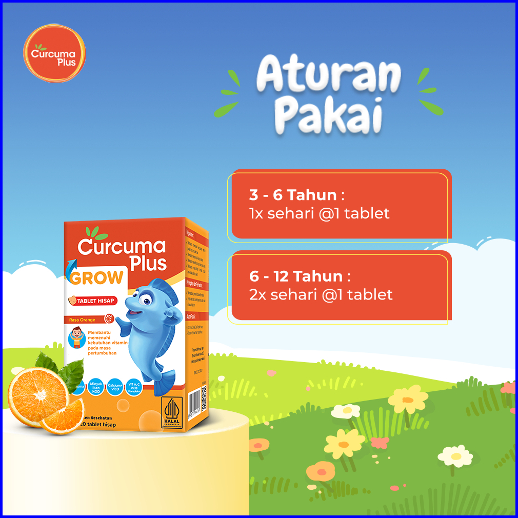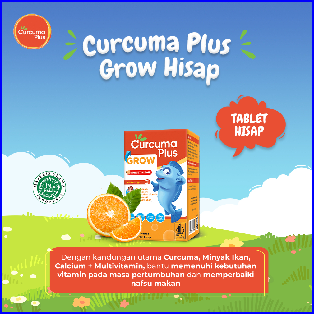 Curcuma Plus Grow Tablet Hisap Multivitamin Rasa Jeruk 20 Tablet