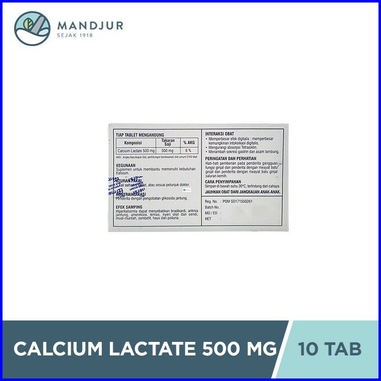 Calcium Lactate 500 Mg 10 Tablet - Memenuhi Kebutuhan Kalsium