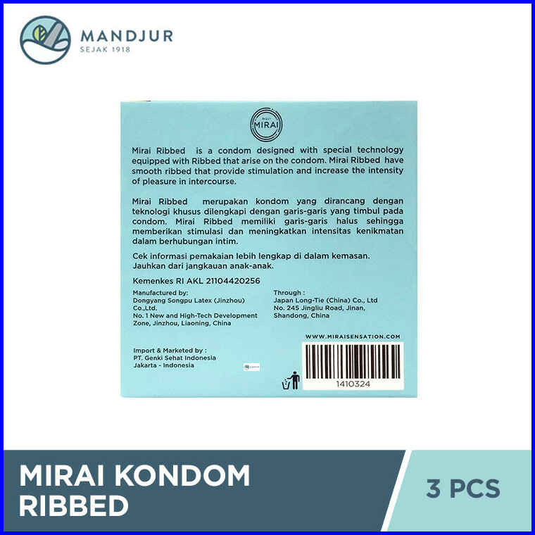 Kondom Mirai Ribbed 3 Pcs - Tekstur Garis Garis Halus