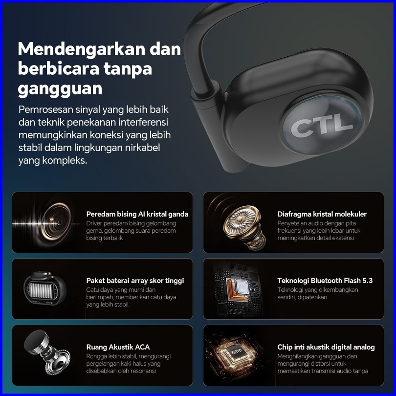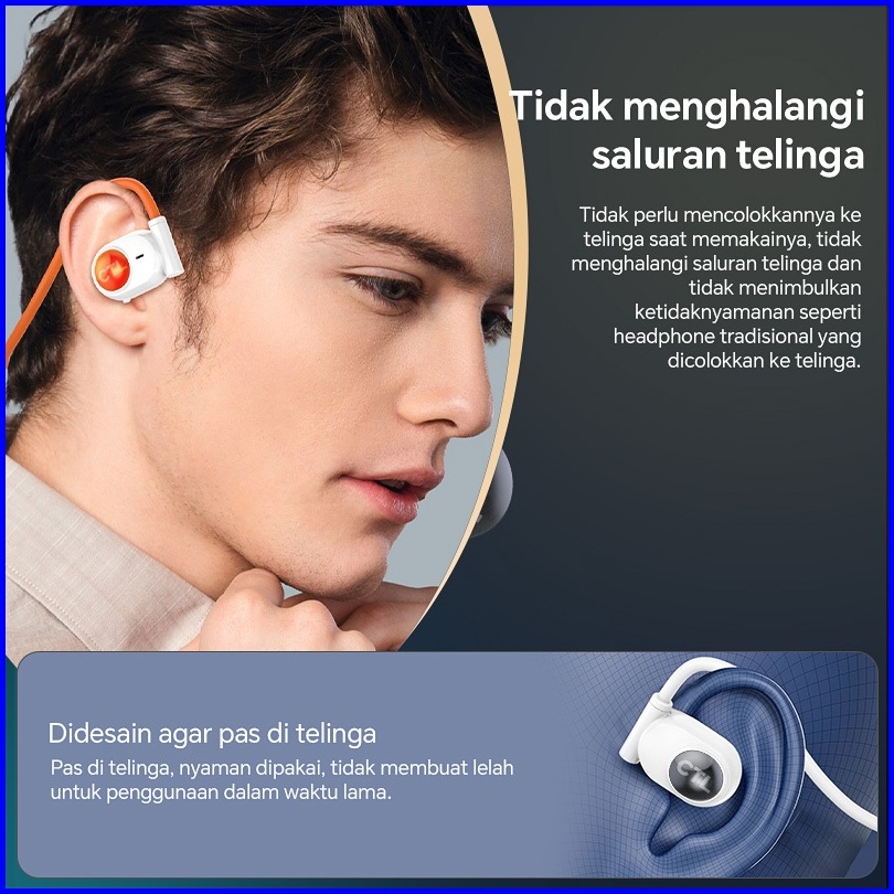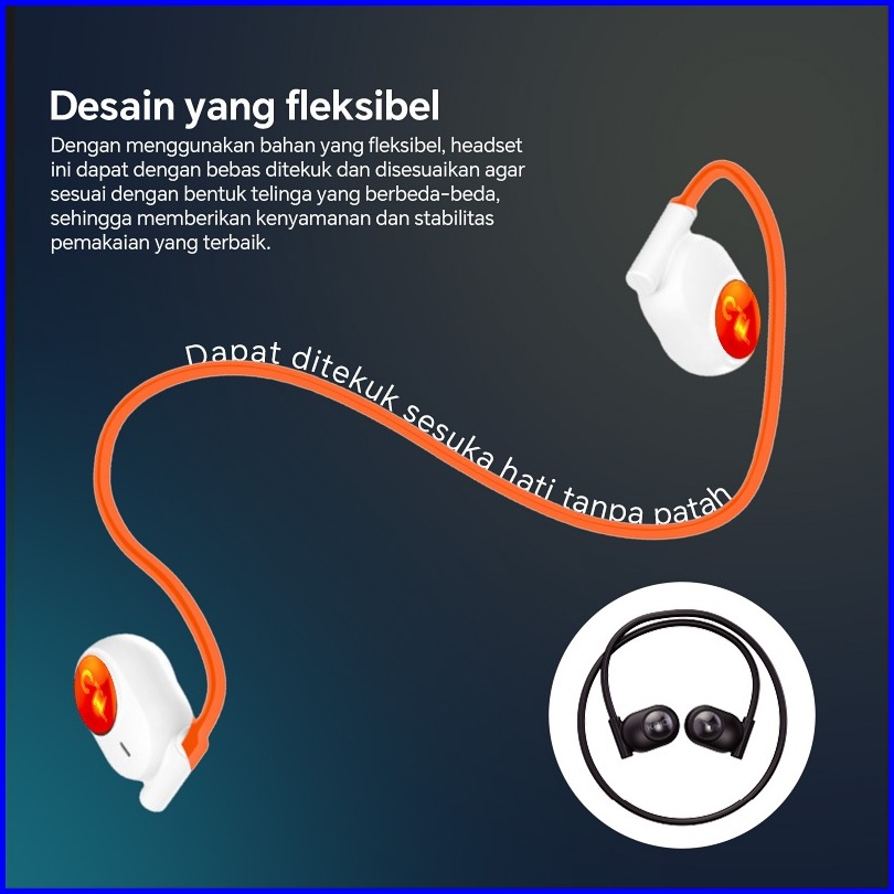 Headset Bluetooth Gantung Leher Nirkabel Dengan Konduksi Udara Tidak Masuk Telinga Untuk Olahraga Dan Lari
