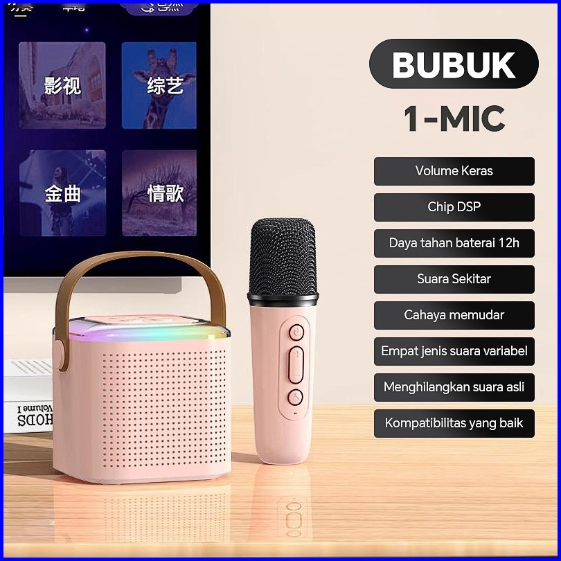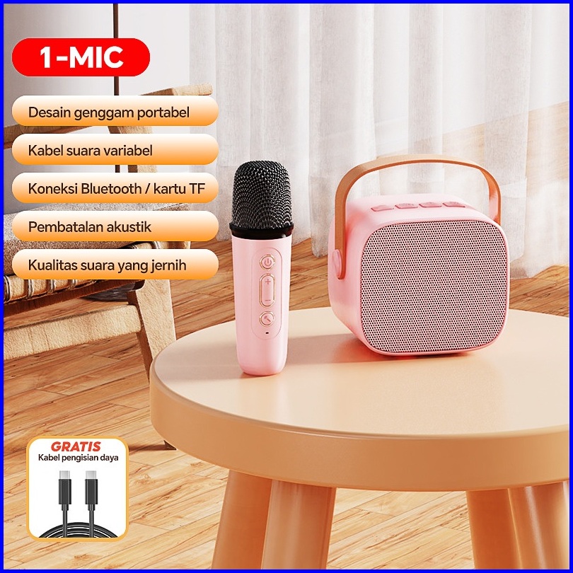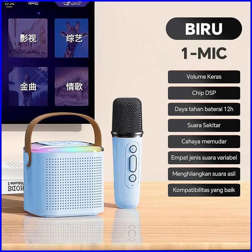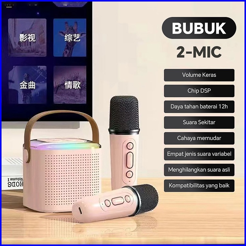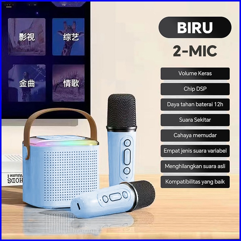 Mini Y1 Wireless Bluetooth Microphone Speaker 2 Microphone Karaoke Colourful Lights Super Bass Simple Portable Home Ktv