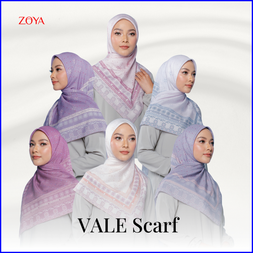 Zoya Vale Scarf - Kerudung Hijab Segiempat Motif With Pouch Ziplock - Bahan Poly Fine 110x110