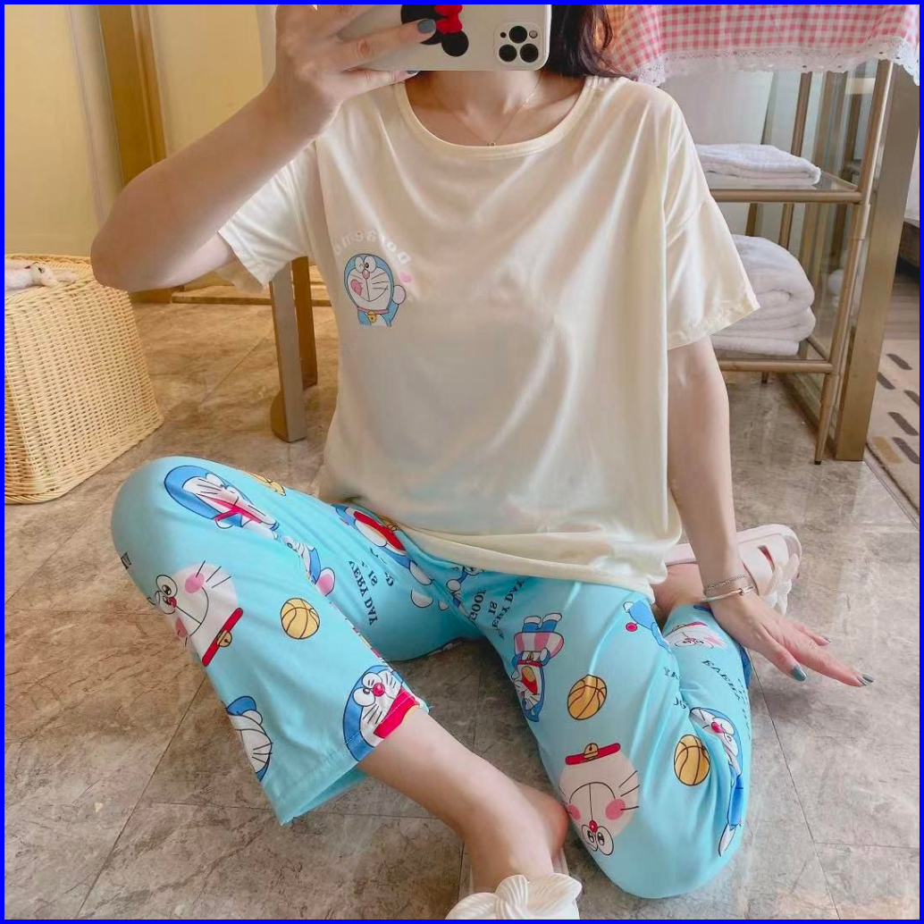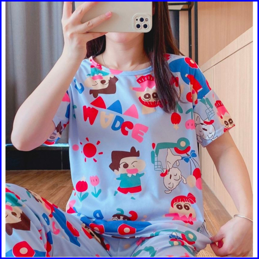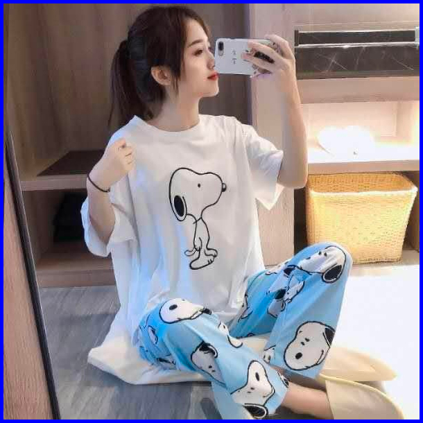 Opt P5 Free Ongkir Piyama Wanita Set Lengan Pendek Celana Panjang Baju Tidur Cewek Polyester