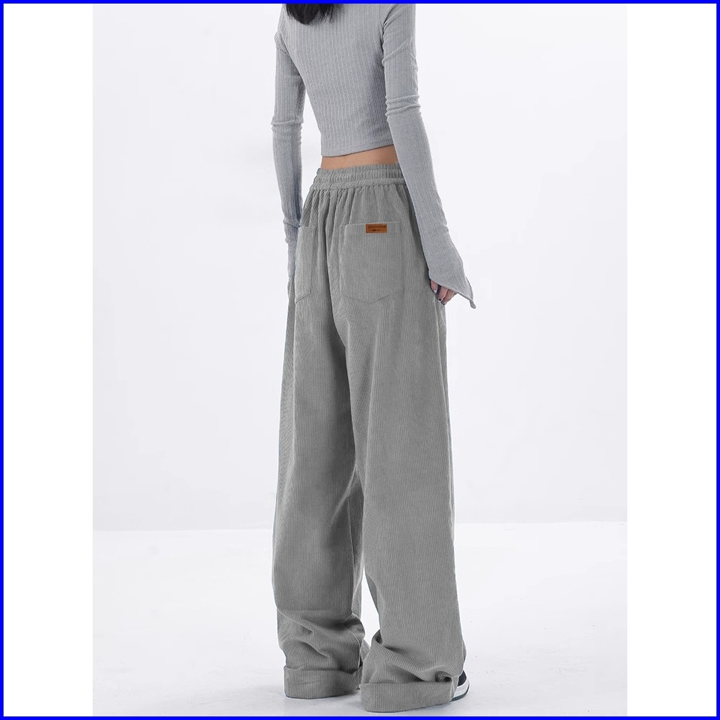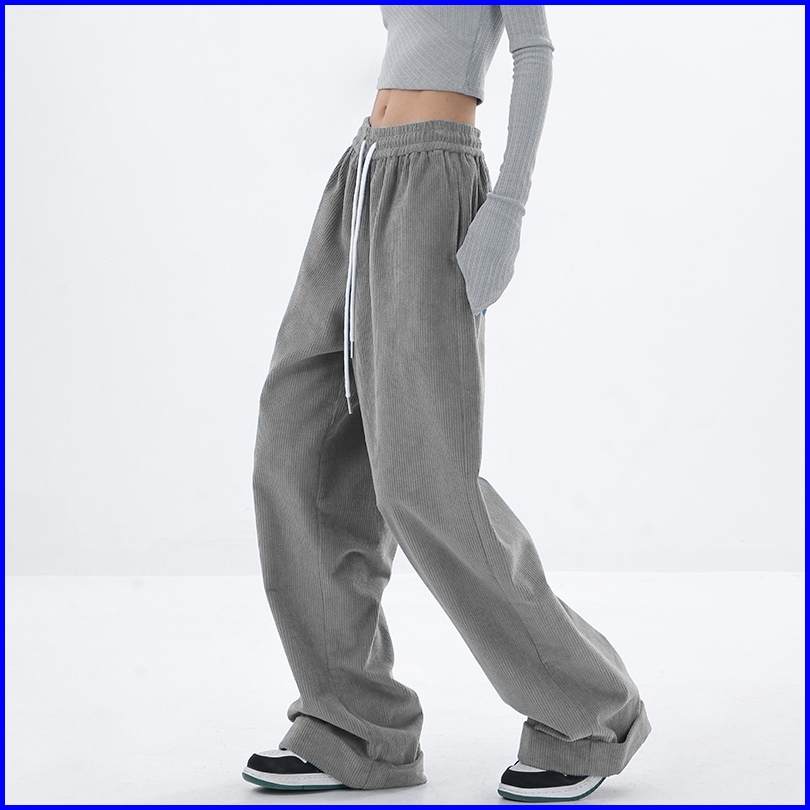 Keygirl Celana Corduroy Wanita Jumbo Kasul Celana Kaki Lebar Pinggang Tinggi Korduroi Korean Kekinian