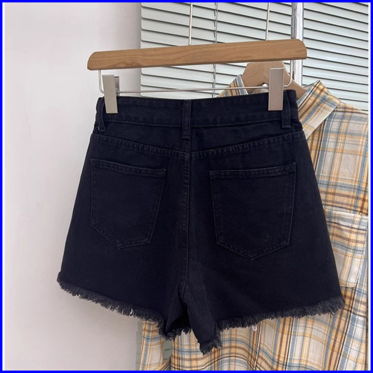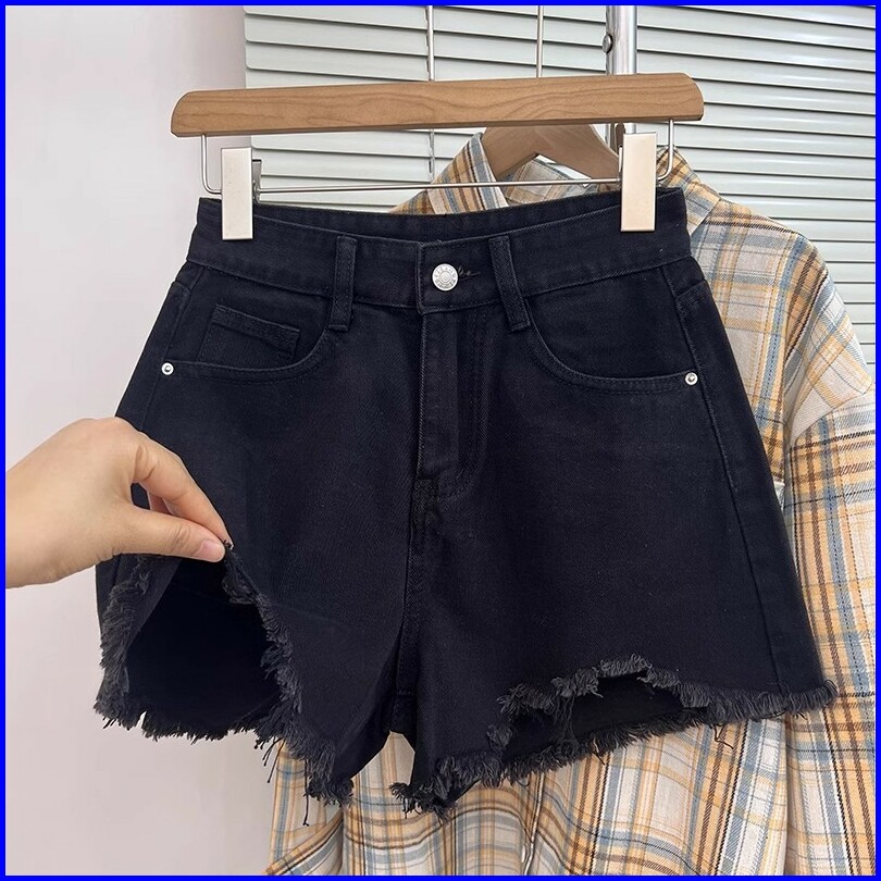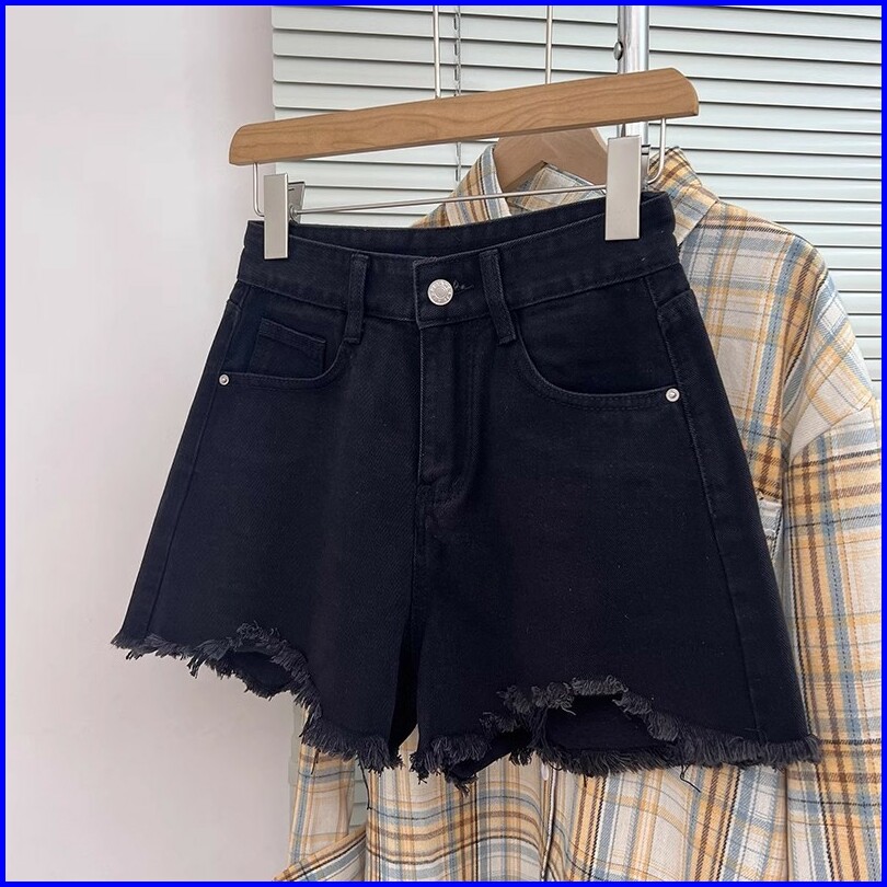 Keygirl Celana Pendek Ripped Denim Tepi Mentah Pinggang Tinggi Ukuran Besar Untuk Wanita Celana Hot Kaki Lebar A-line Lo