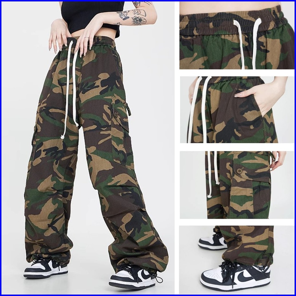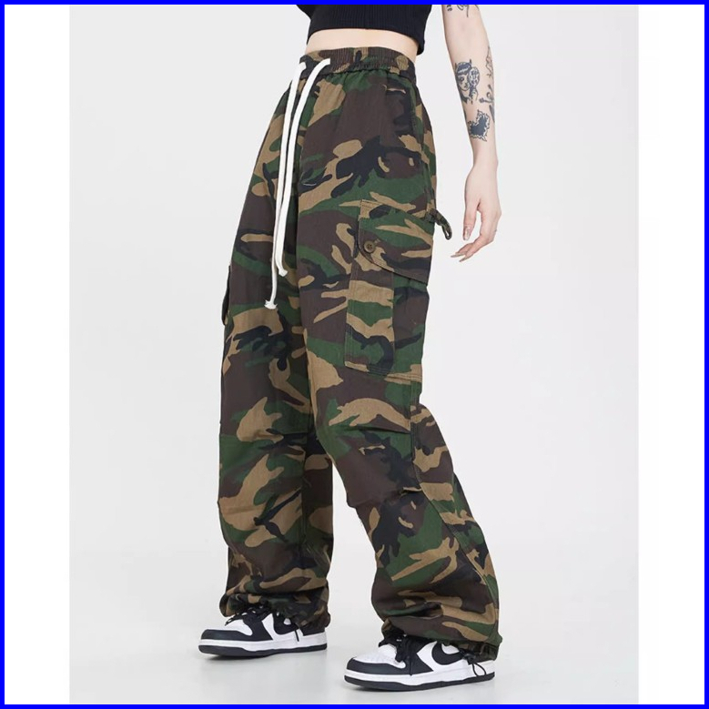 Keygirl Celana Army Wanita Span Karet Cargo Pants Wanita Highwaist Baggy Pants Second Kulot Loose Pants Fashion