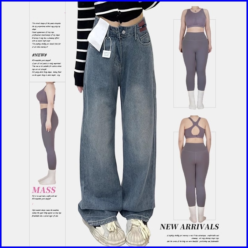 Keygirl Real Pictcelana Highwaist Baggy Loose Jeans Retro Straight Celana Jeans Wanita Kulot Korean Style Kekinian