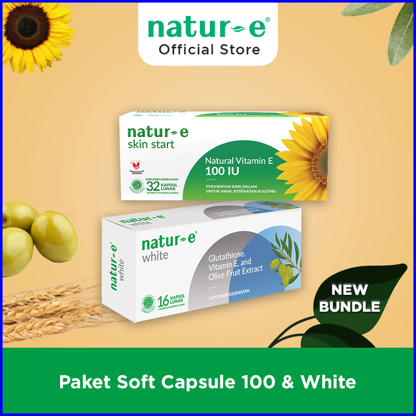 Bundle Natur-e Skin Start Natural Vitamin E 100 Iu Dan White 32s Soft Capsule Suplemen Vitamin Vitamine