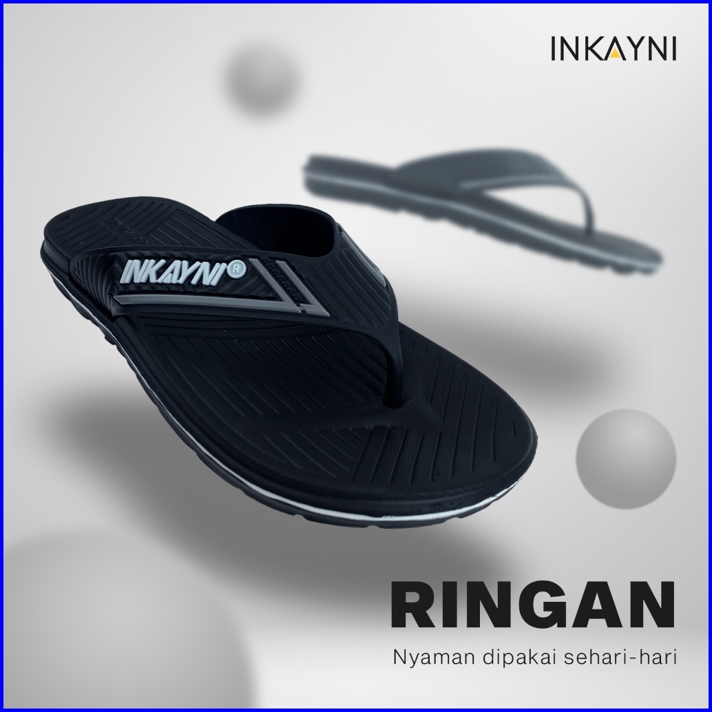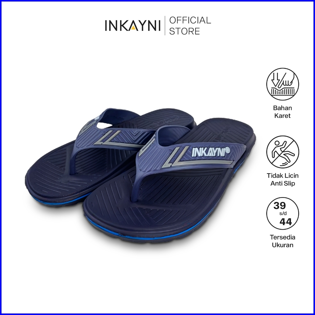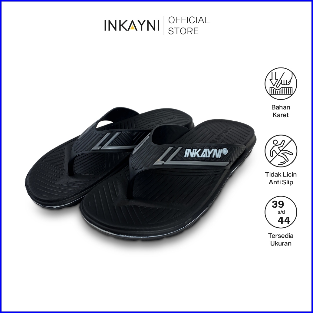 Inkayni Sandal Jepit Pria Size 39-44 Anti Slip Bahan Karet Motif Straight