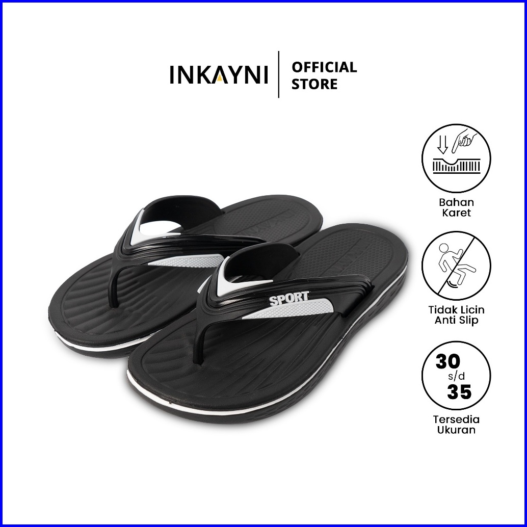 Inkayni Sandal Jepit Anak Laki-laki Size 30-35 Flip Flop Bahan Karet Casual Anti Slip Motif Sport