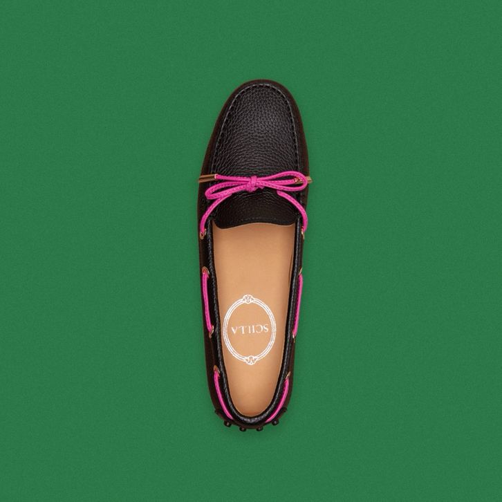 Scilla Moccasin in Black Grained Genuine Leather custom shoelaces