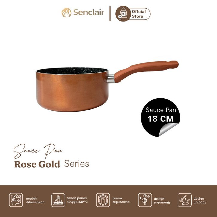 Senclair Rose Gold Saucepan 16 cm, 18 cm 1 pcs Panci Cookware Peralatan Masak Anti Lengket SCMP