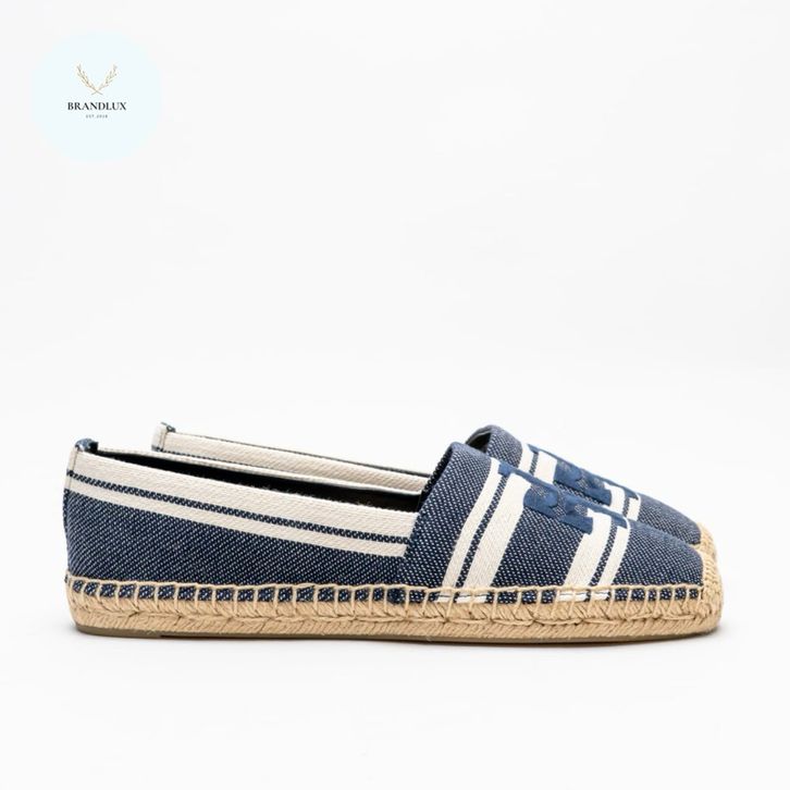 Tory Burch Double T Jacquard Espadrilles Ash White/ Blue Chiaro