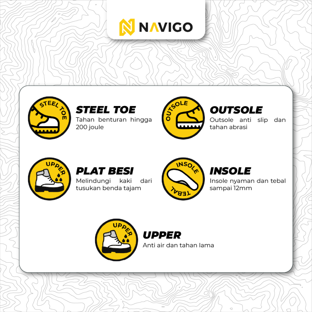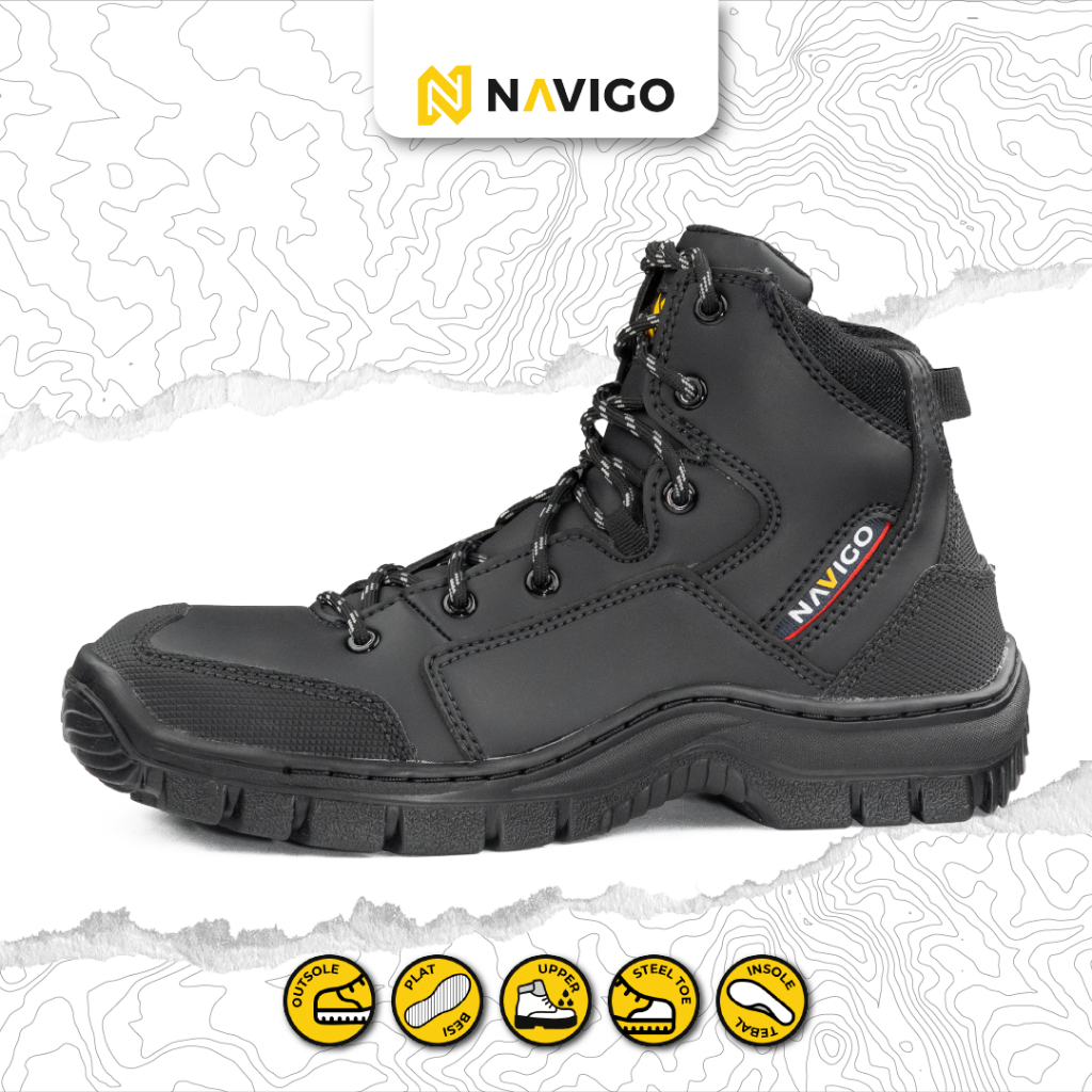 Navigo Sepatu Safety Pria Wanita SW2 Hi Black - Safety Shoes Anti Slip Outdoor Touring Hiking