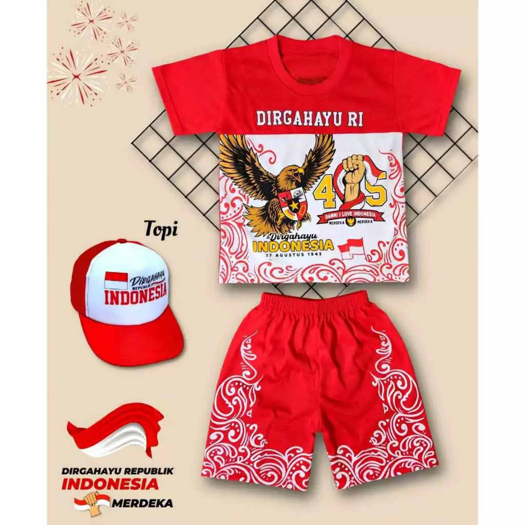 SETELAN BAJU ANAK INDONESIA FASHION 17 AGUSTUS GARUDA 1945 MERDEKA UNISEX SETELAN TERVIRAL TERLARIS
