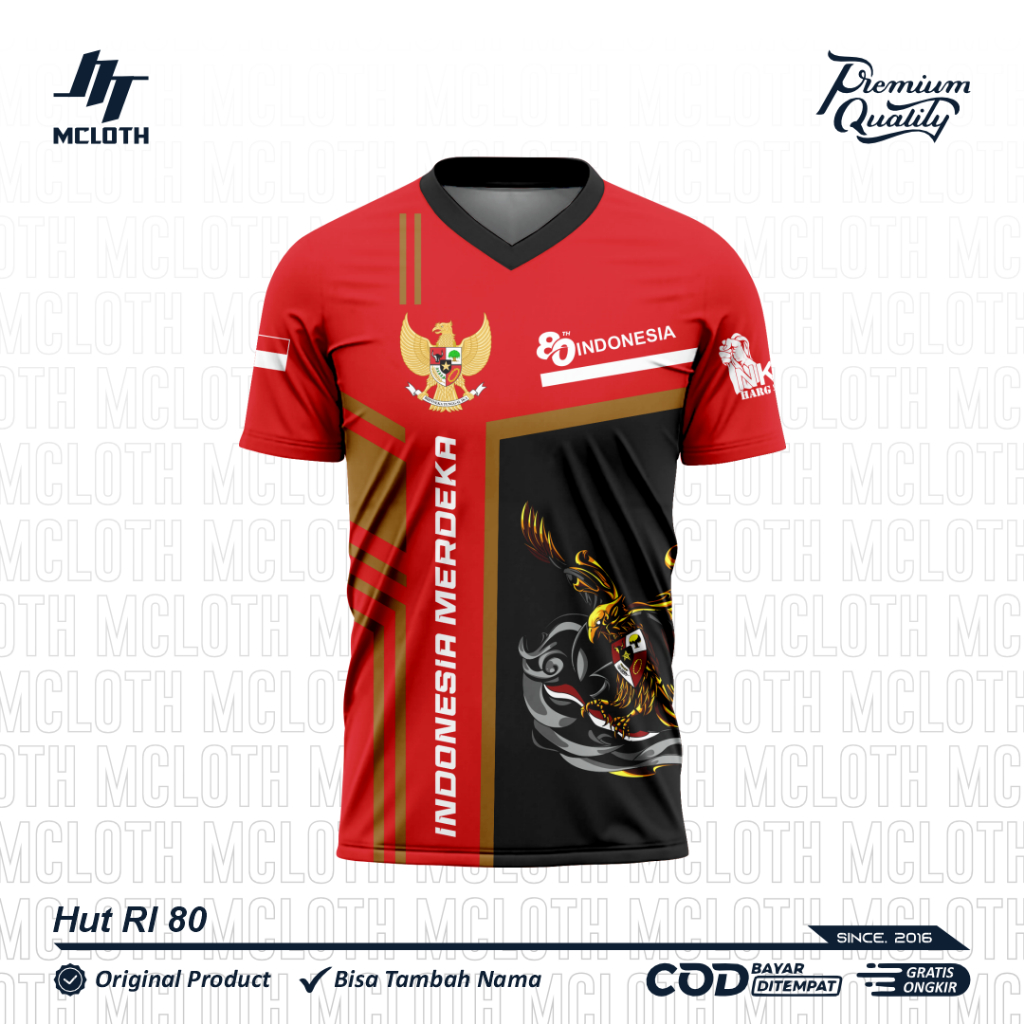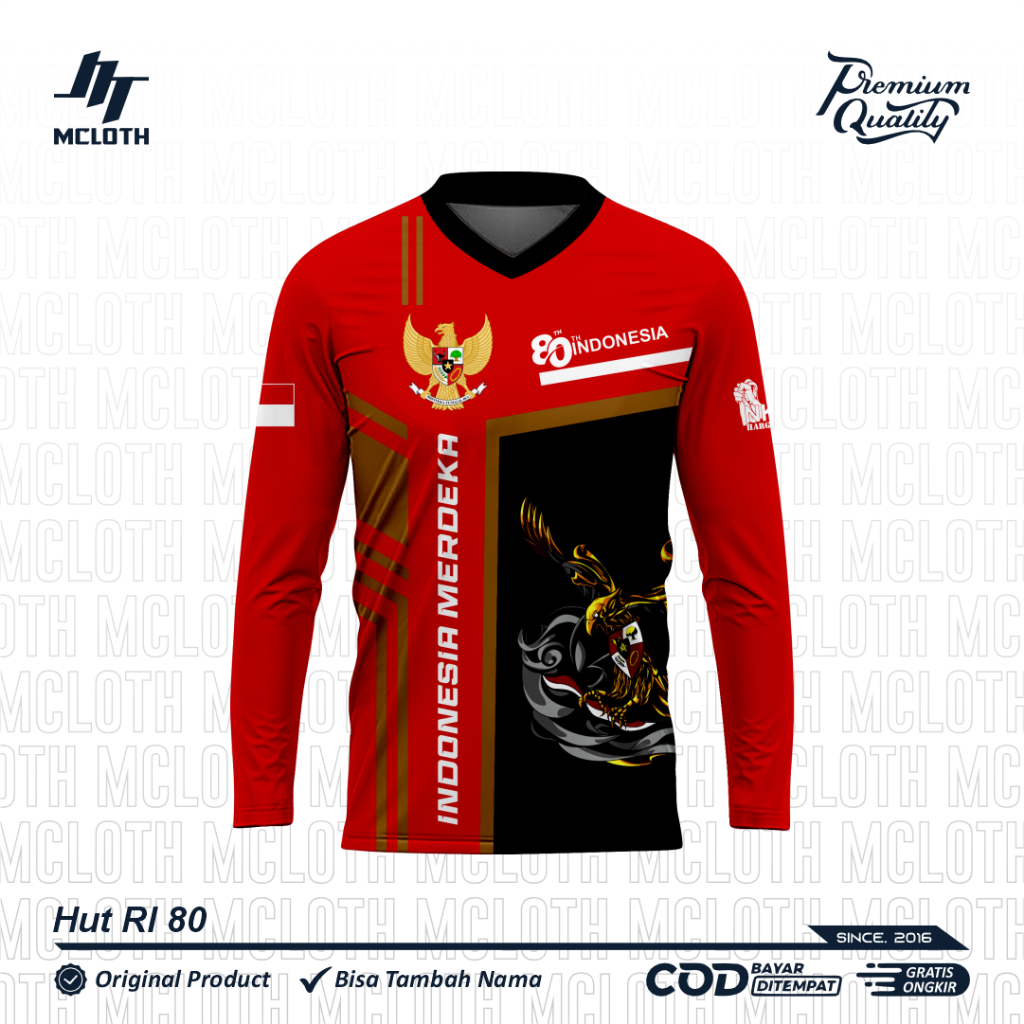 Baju Kaos atasan pendek dan panjang 17 Agustus Jersey Dirgahayu HUT RI-80 desain 2025 Terbaru