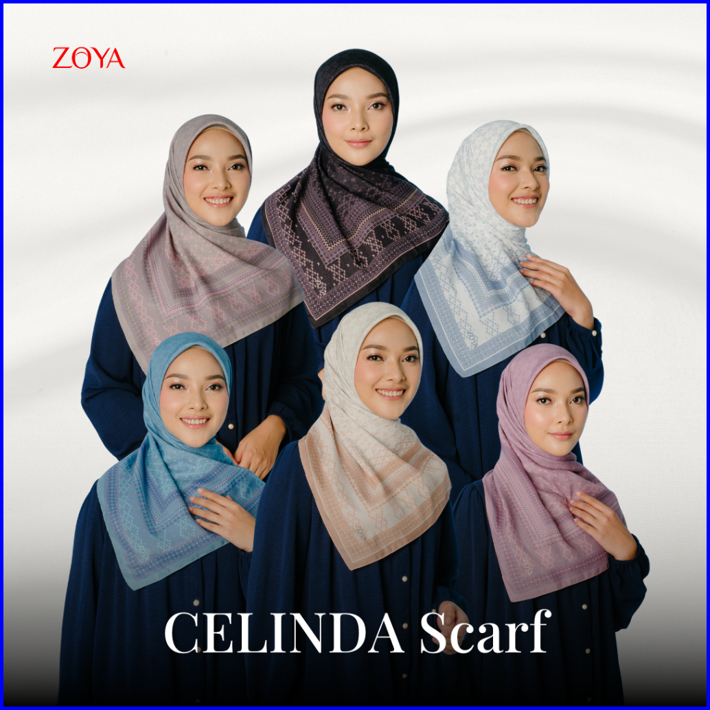 Zoya Celinda Scarf - Kerudung Hijab Segiempat Motif With Pouch Ziplock - Bahan Poly Fine