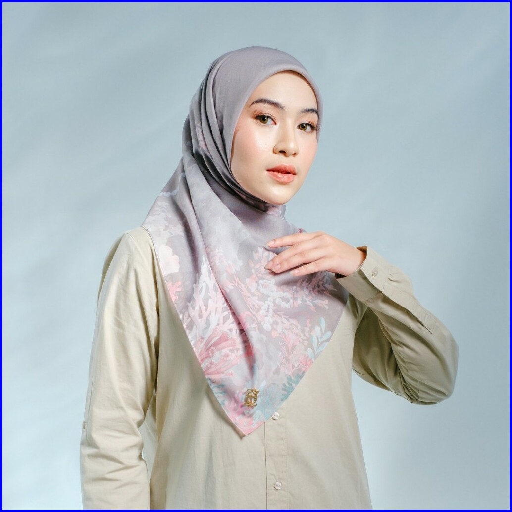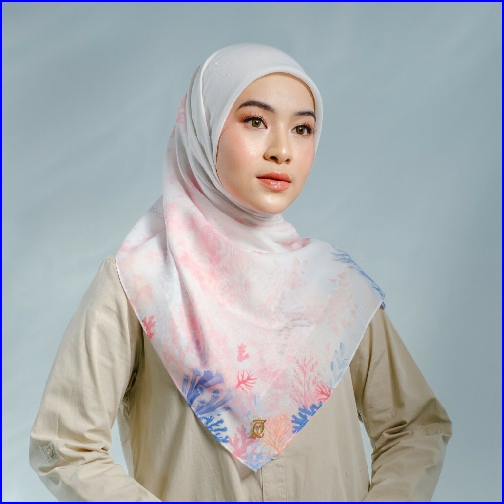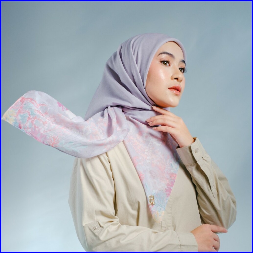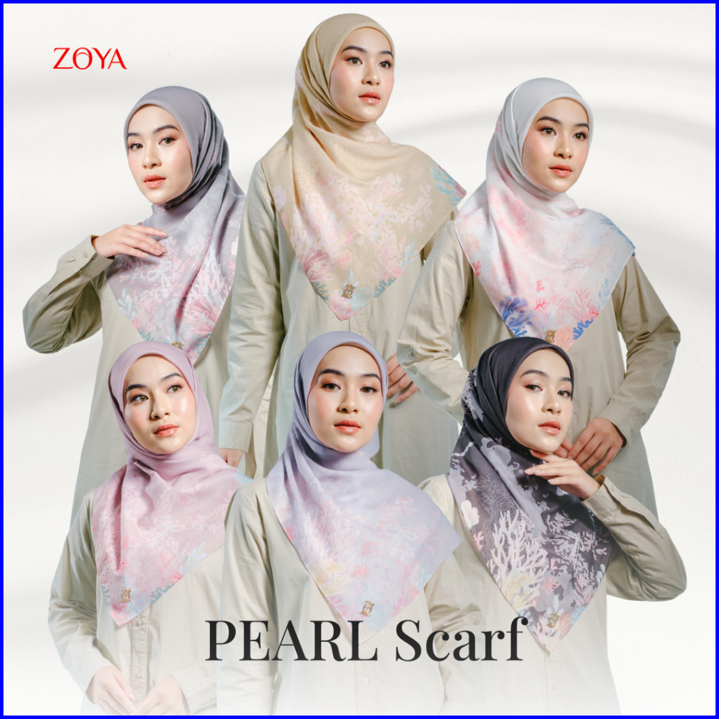 Zoya Pearl Scarf - Kerudung Hijab Segiempat Motif With Box - Bahan Nesla - Ukuran 115x115