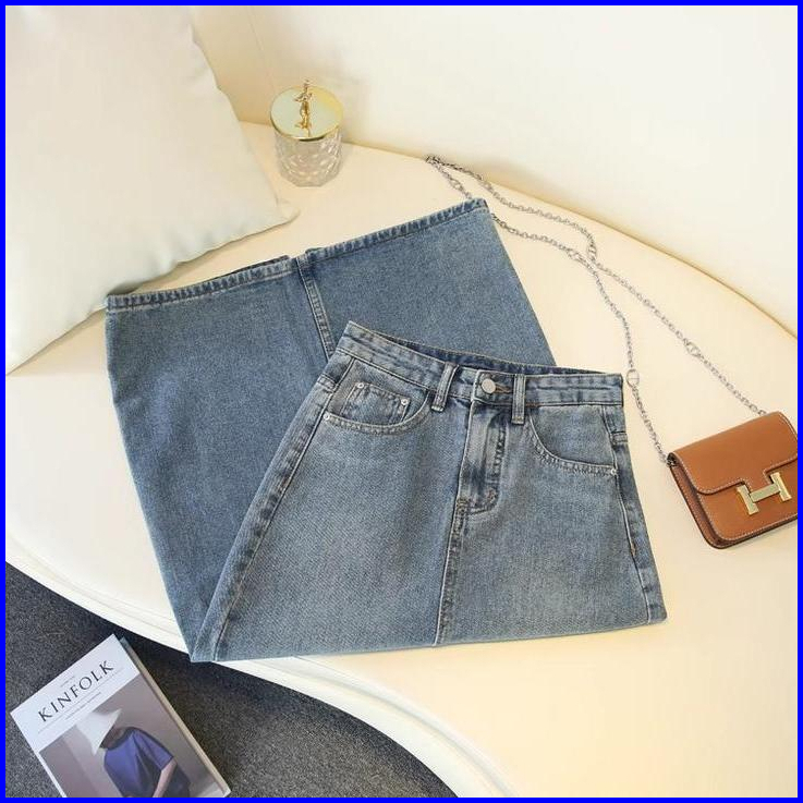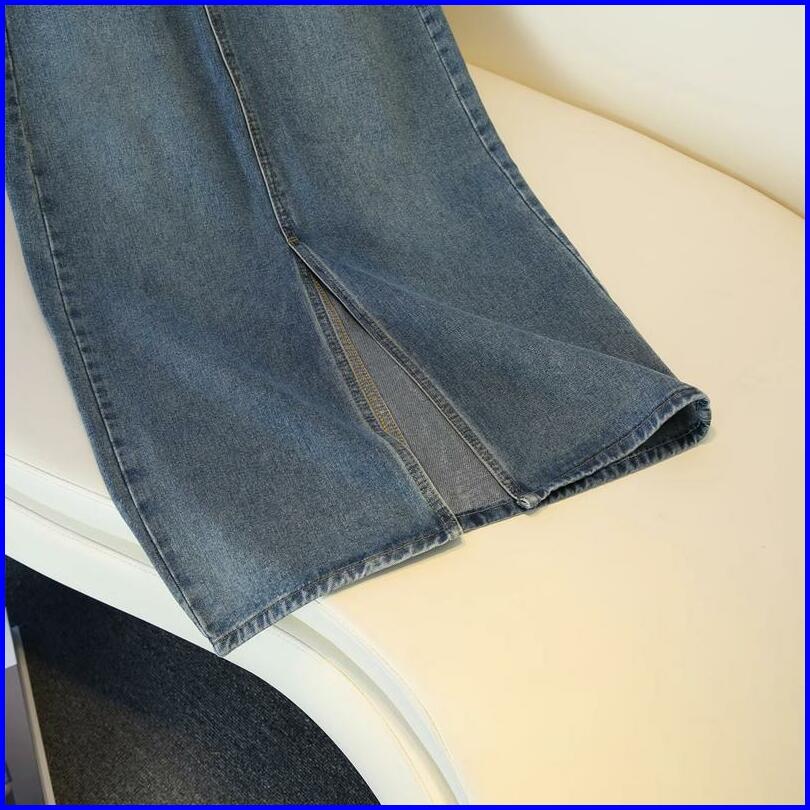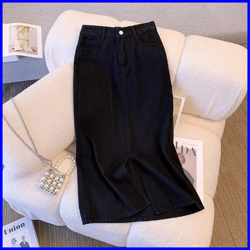 Keygirl Premium-rok Biru Highwaist Kasual Rok Jeans A-line Midi Jumbo Size 5xl Skirt Split Depan Fashion Wanita