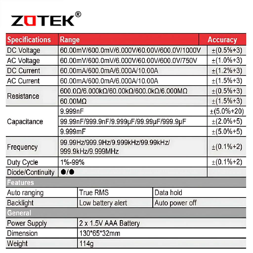 MULTITESTER DIGITAL ZOTEK ZT 101 / AVOMETER DIGITAL ZOTEK ZT101