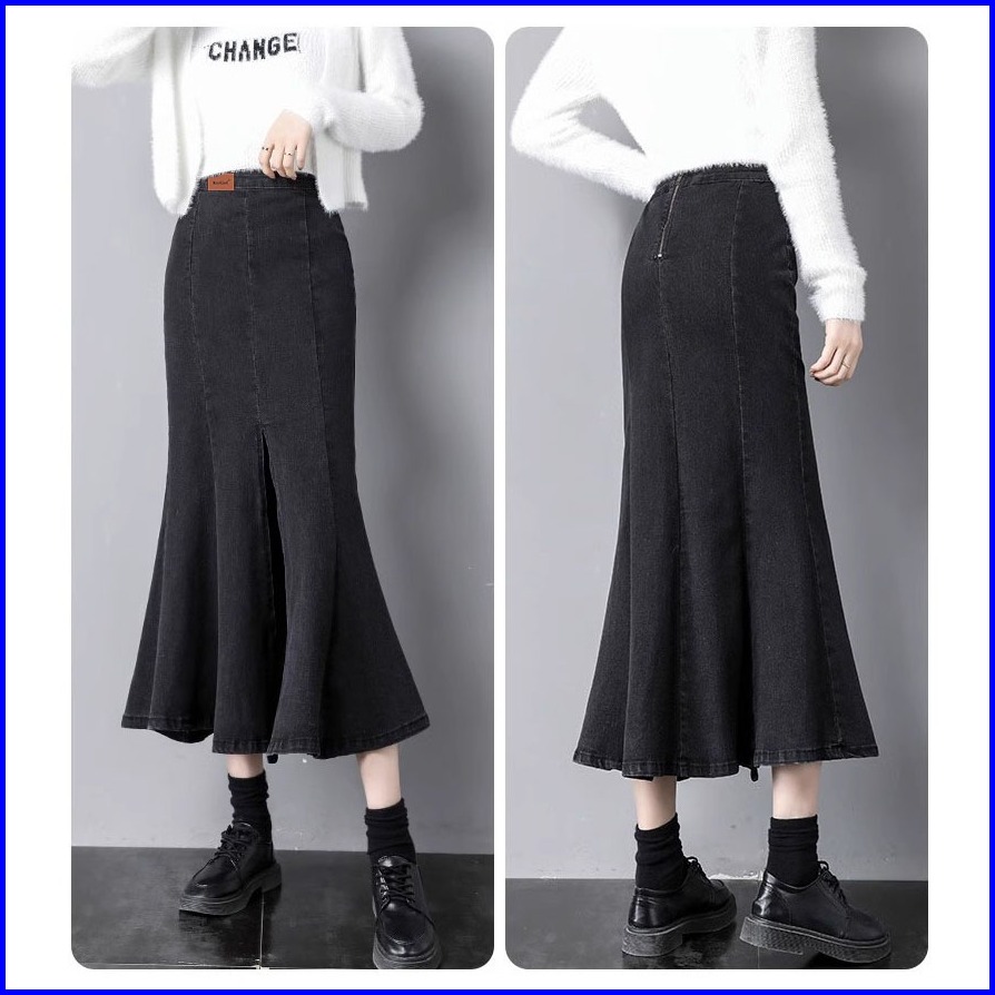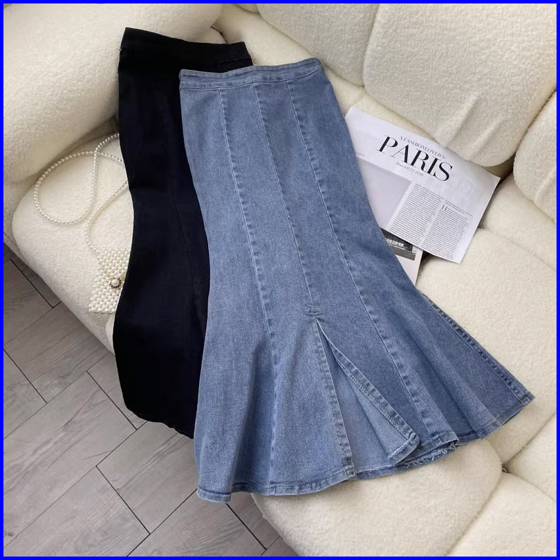 Keygirl Rok Jeans Wanita Terbaru Rok Korean Style Highwaist Panjiang Rok Asymmetrical Skirt Rok Peplum Skirt Rok Span Ke