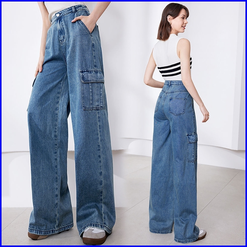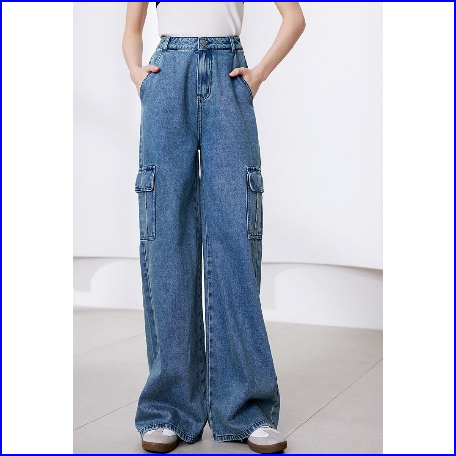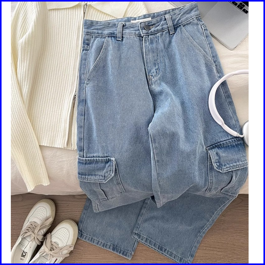 Keygirl Original Beberapa Saku Cargo Jeans Wanita Highwaist Kekinian Highwaist Loose Big Size Jumbo 5xl New Jeans