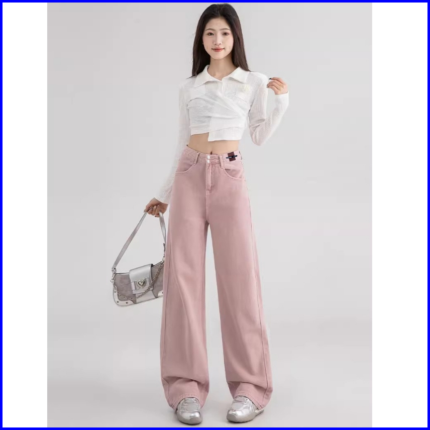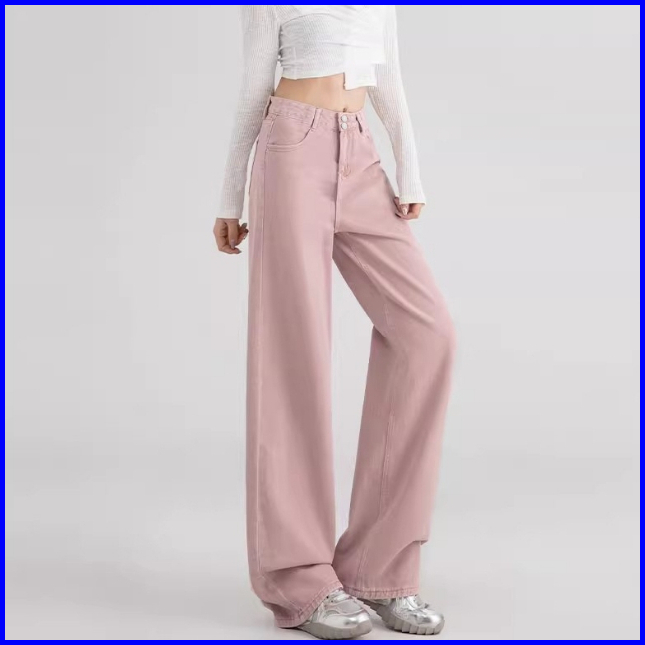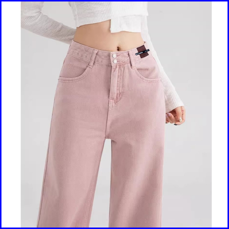 Keygirl Kulot Highwaist Jeans Pink Ukuran Jumbo Loose Pants Premium Straight Pants Denim Wanita