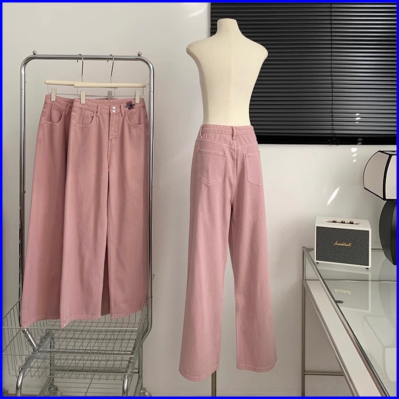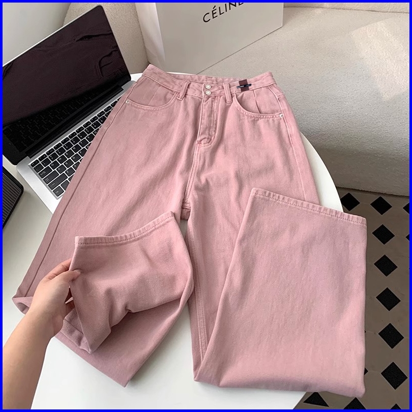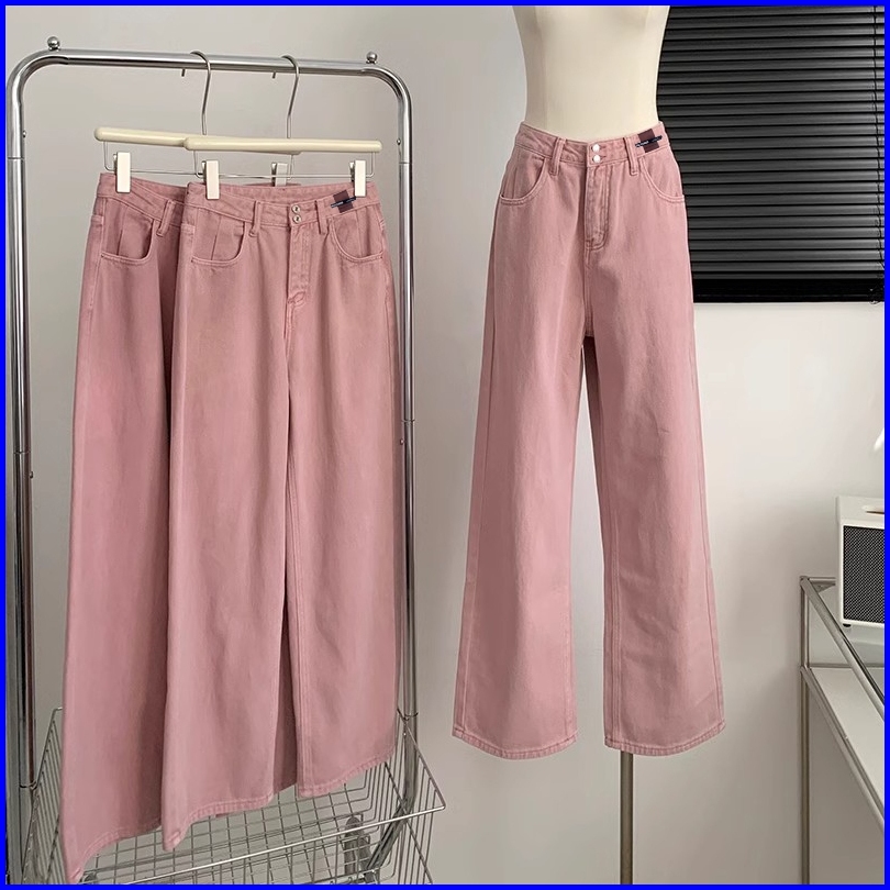 Keygirl 2025 New Celana Jeans Pink Wanita Celana Kulot Loose Pants Premium Highwaist Kasual Denim Korean Style Jumbo Siz