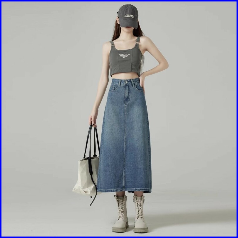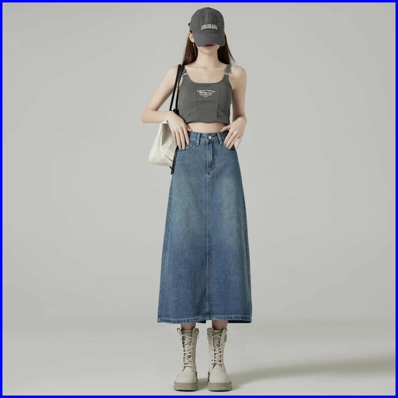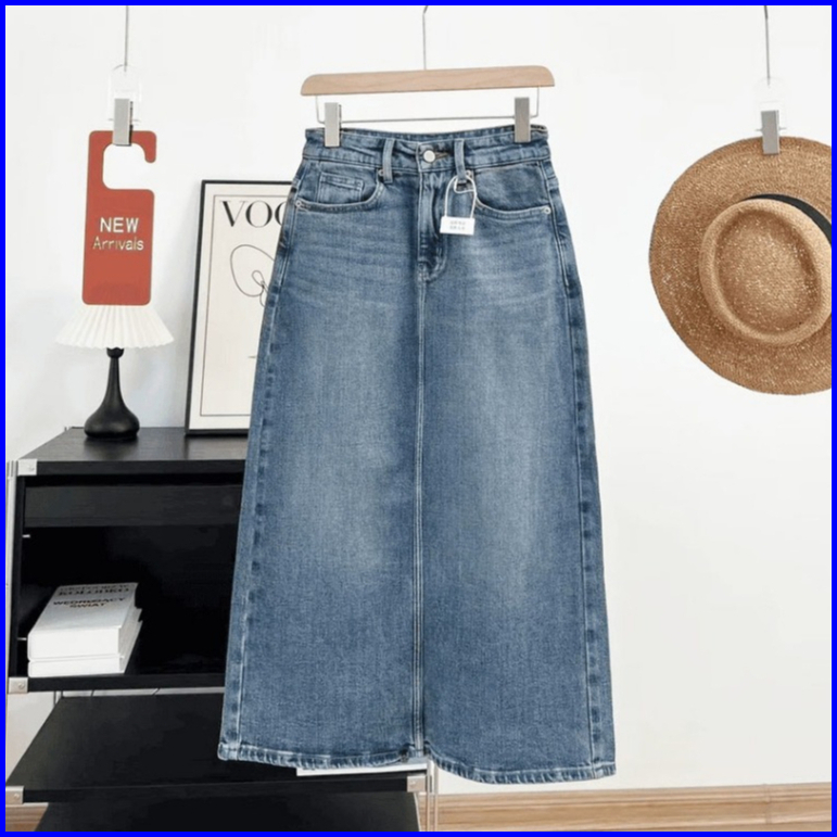 Keygirl Rok Jeans Belah Premium Wanita Midi Skirt A Line 7 8 Korea Rok Jeans Span Panjang Kekinian