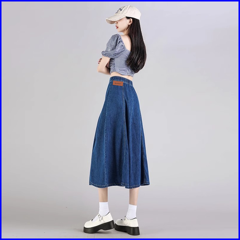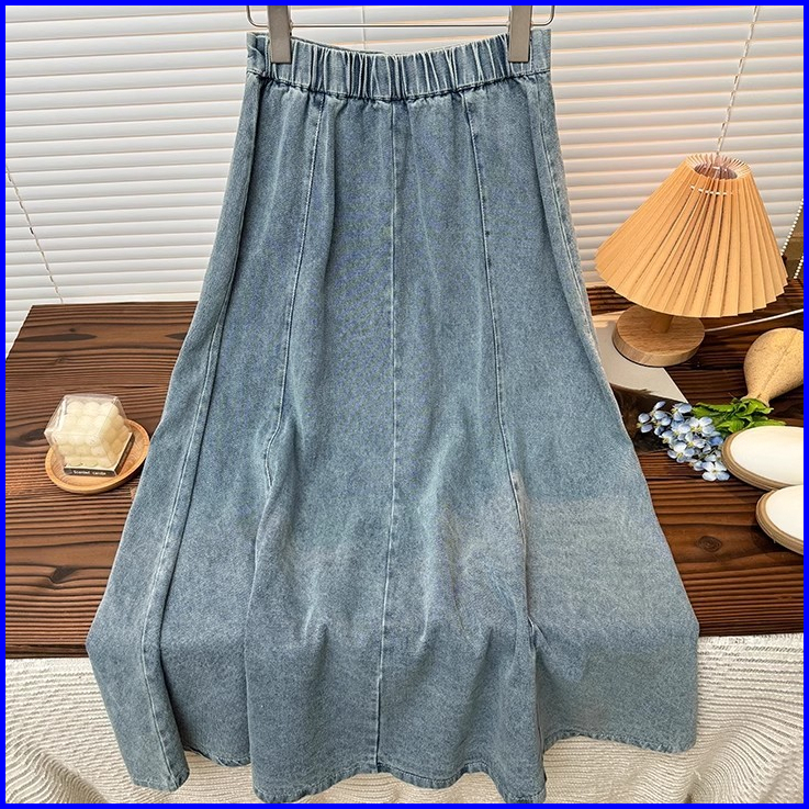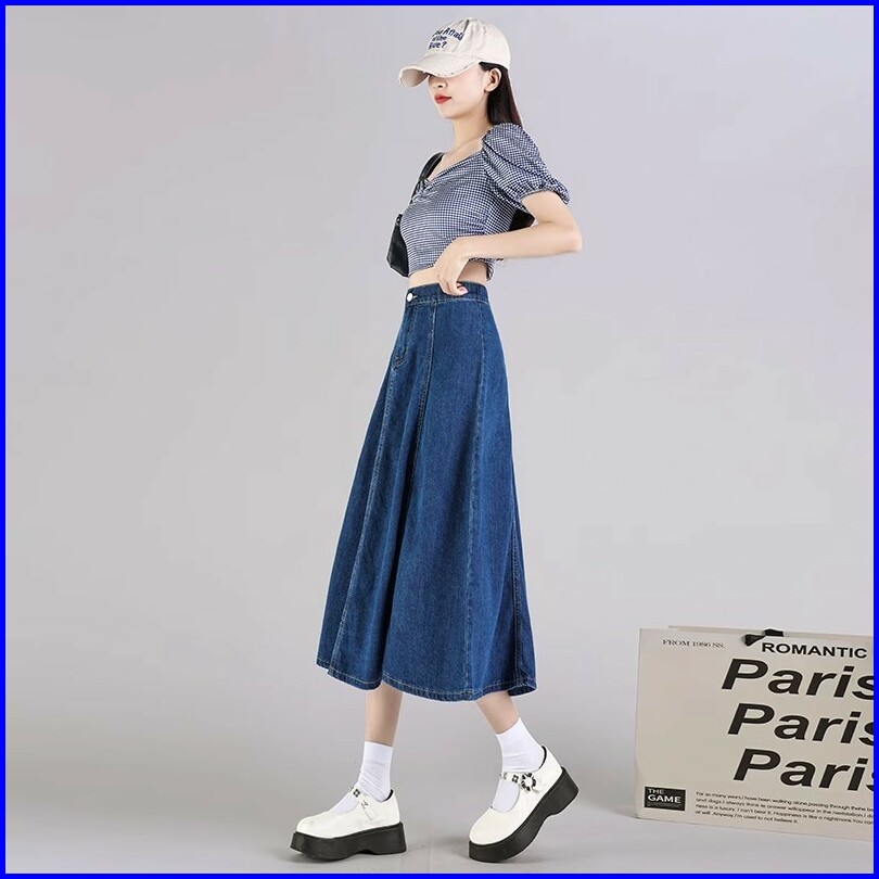 Keygirl Rok Flare Korean Style Jumbo Skirt Denim Midi 7 8 Highwaist Melar Pingang