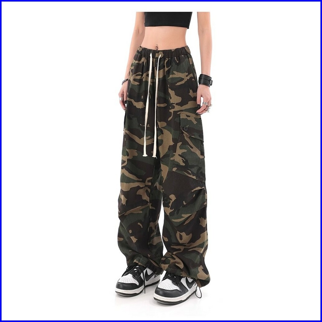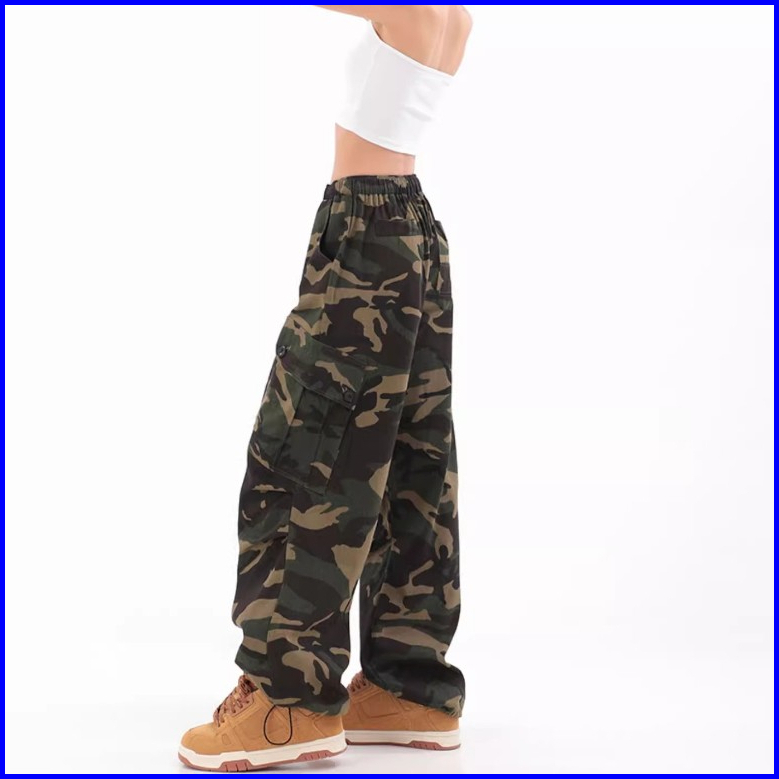 Keygirl S-5xl Street Style Celana Cargo High Waist Kasual New Fashion Celana Loose Pants Wanita Jumbo Celana Kulot Cargo
