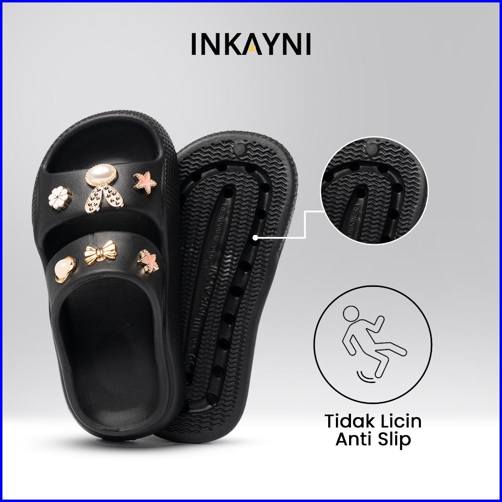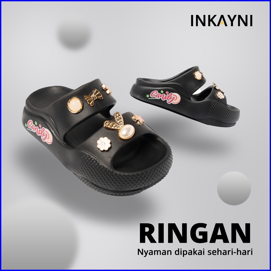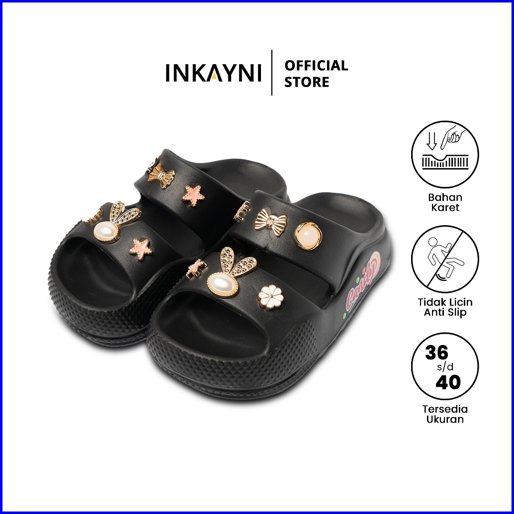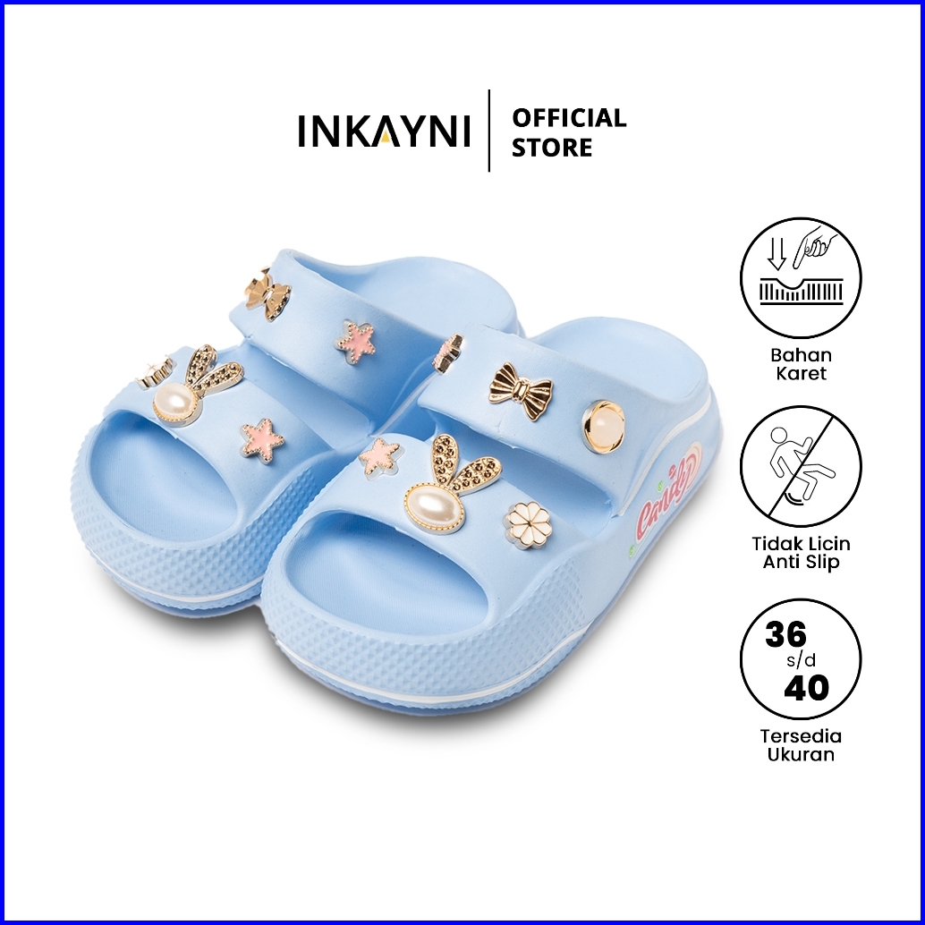 Inkayni Sandal Selop Anak Perempuan 30-35 Anti Slip Karet Elastis Kodok Baim Motif Imut
