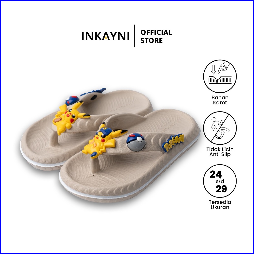 Inkayni Sandal Jepit Anak Pokemon Anti Slip Size 24-35 Ringan Dan Elastis