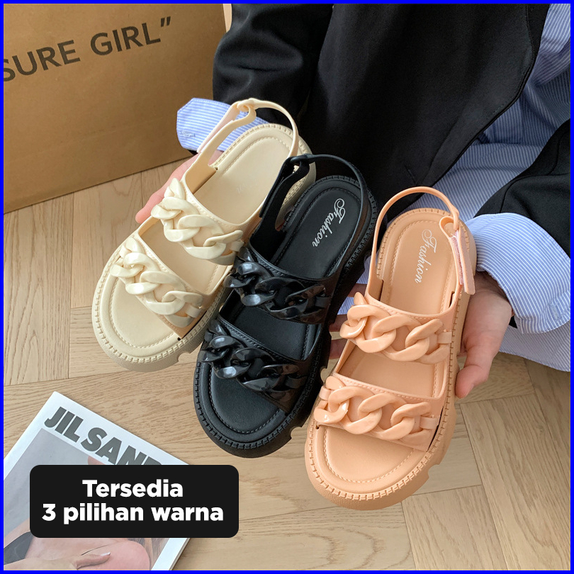 Coolrain Sandal Fuji Wanita Dewasa Korea Premium Sendal Wanita Karet Jelly Wedges Platform Tebal Empuk Tali Belakang Hsn