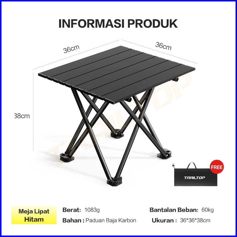 Trailtop Meja Lipat Outdoor Tebal Dan Tahan Aus Meja Camping Lipat Kuat Menahan Beban